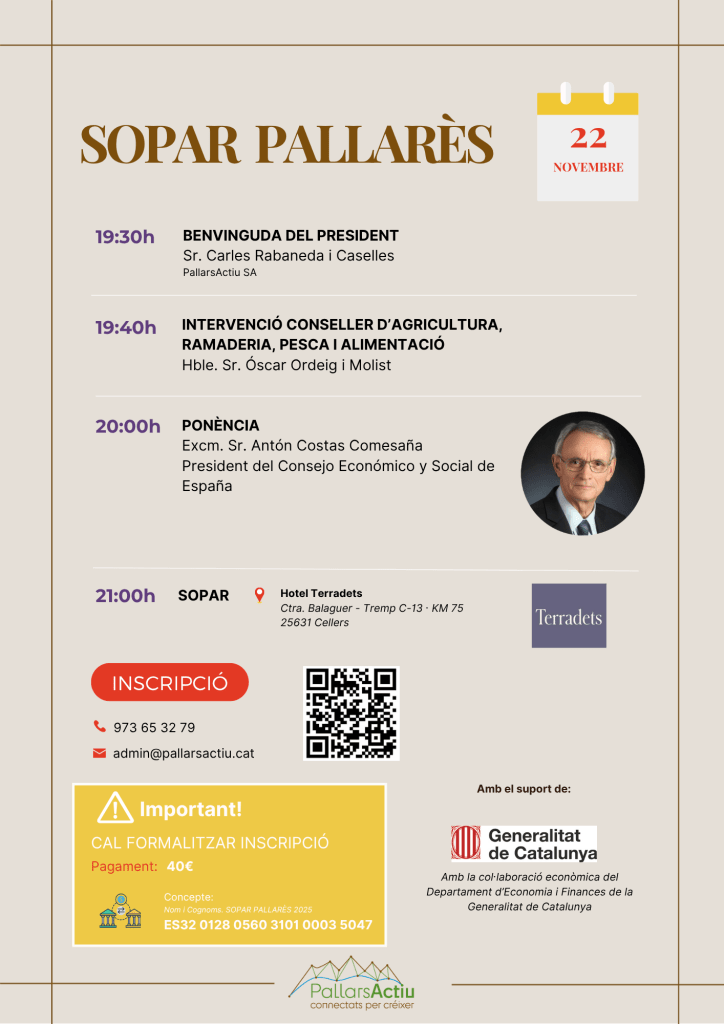 En ingressar el teu correu electrònic, acceptes que Pallarsactiu S.A. l’inclogui en la seva base de dades per enviar-te novetats. Per a més informació consulta la pàgina de política de privacitat.